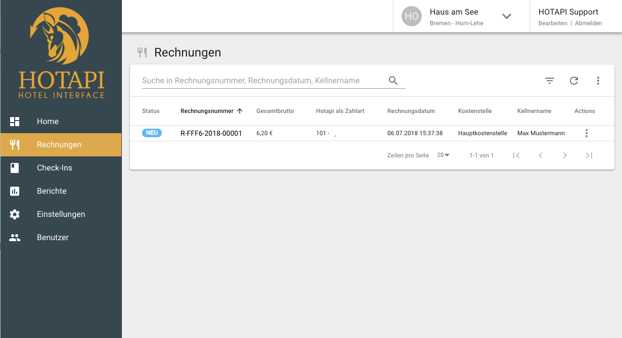 Mit HOTAPI lässt sich der Übertragungsstatus der Restaurant-Umsätze einsehen. So bleibt der Datenfluss zwischen den Systemen im Blick.